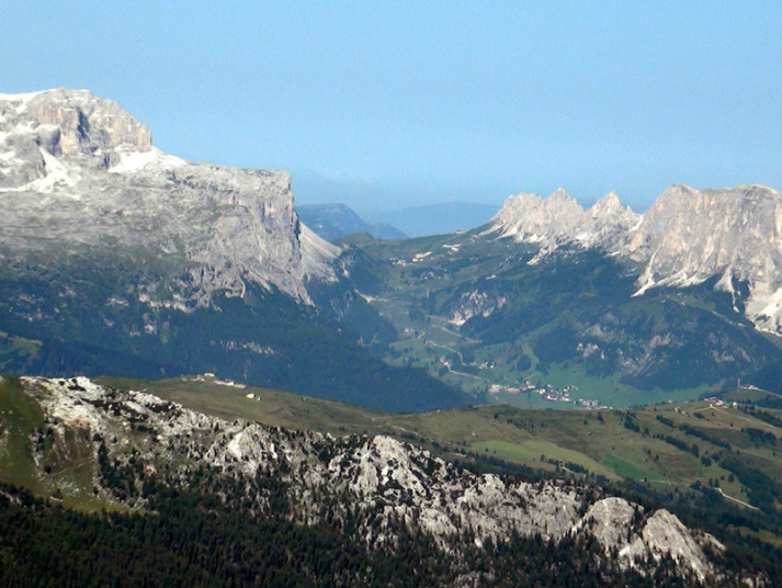 遠くにモンテ・ペルモ(Monte Pelmo3168m)が見えます。中央の霞んで見える山。