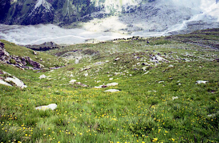ロゼック谷は可憐な高山植物と豪快な氷河が良く調和しています。